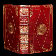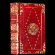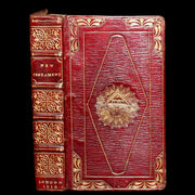 Binding: Attractive and very good original Georgian straight-grain red morocco binding with richly gilt spine compartments, elaborate gilt borders on both covers, and a striking central gilt-stamped radiant All-Seeing Eye motif within a triangle, surrounded by rays — a symbol of divine providence often associated with Masonic iconography. Inner gilt dentelles, all edges gilt, and dark green endpapers (hinges fine, overall slightly worn and scuffed - as shown) under a protective removable mylar cover.