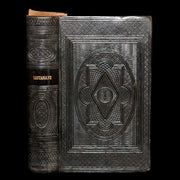 Binding: Attractive and very good contemporary embossed black morocco binding, with richly blind-stamped panels in concentric geometric and ornamental designs. Gilt lettering to spine: TESTAMENT (hinges fine, overall slightly worn and scuffed - as shown) under a protective removable mylar cover. All edges gilt.