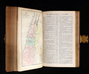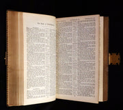 Binding: Attractive and very good original full embossed black pebbled leather binding, finely bound and signed by Bagster, gilt title on spine, with working clasp (hinges fine, overall slightly worn and scuffed - as shown) under a protective mylar cover. All edges gilt.