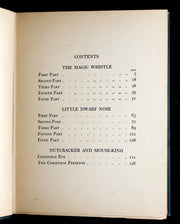 The book: This first edition of The Magic Whistle and Other Stories is a delightful early 20th-century children’s book, offering a trio of fantasy tales: "The Magic Whistle," "Little Dwarf Nose," and "Nutcracker and Mouse-King." These are presented in multiple parts, reflecting serialized storytelling. The edition is richly illustrated with enchanting plates by Florence Anderson, who evokes the magical realism and elegant fantasy of the period. Browne’s adaptations bring together elements of Arabian folklore, German Romanticism, and Christmas mythos in a volume that is both visually and narratively charming.