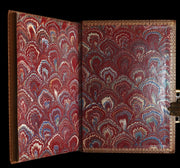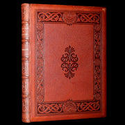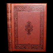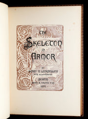 Binding: Attractive and very good finely bound binding in richly embossed brown morocco leather, featuring elaborate blind-stamped panels of interlacing Celtic knotwork and stylized floral medallions. Raised bands with fleur-de-lis motifs on the spine, gilt title “Skeleton in Armor” and publisher name “Osgood.” (hinges fine, overall slightly worn and scuffed - as shown) under a protective removable mylar cover. All edges gilt.