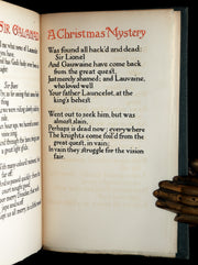 The poem itself is Morris’s powerful retelling of the spiritual quest of Sir Galahad, suffused with imagery of purity, divine trials, and the knight’s visionary encounters. The printing is deliberately restrained yet sumptuous, allowing the lyricism of Morris’s verse to stand in perfect balance with the press’s ornamental design.