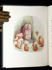The book: A delightful early edition of The Tale of Squirrel Nutkin, one of Beatrix Potter’s most beloved children’s books. Originally published in 1903, this classic tale follows the adventures of the impudent squirrel Nutkin and his unfortunate encounter with Old Brown, the owl. This 1910 edition retains the original charm of Potter’s delicate watercolors and masterful storytelling. A highly collectible copy for lovers of classic children's literature and Beatrix Potter enthusiasts.