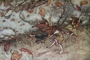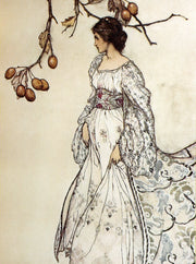 The illustrator Arthur Rackham (1867–1939) was one of the greatest illustrators of the Golden Age of Illustration. Known for his atmospheric palettes, sinuously detailed linework, and ability to render both enchantment and mystery, Rackham’s interpretations of fairy tales and fantastical literature—including Peter Pan, Alice in Wonderland, A Midsummer Night’s Dream, and The Brothers Grimm—remain definitive. His illustrations for Peter Pan in Kensington Gardens are consistently ranked among his finest achievements.