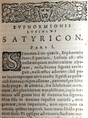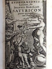 The book: Rare early 17th-century Elzevir edition of "Euphormionis Lusinini sive Ioannis Barclaii Satyricon partes quinque cum clavi. Accessit conspiratio anglicana" -- a Latin edition of the satirical novel "The Satyricon" written by the Renaissance humanist and scholar Johannes Barclay (or John Barclay). The book was first published in 1605
