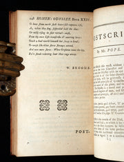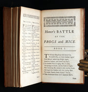 The present 1745 Lintot edition represents a later but authoritative 18th-century printing, issued in a compact and elegant format suitable for private libraries. Particularly desirable is the inclusion of The Battle of the Frogs and Mice, a mock-epic traditionally attributed to Homer, here translated by Thomas Parnell, which adds both literary breadth and charm to the set.