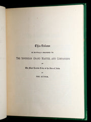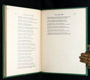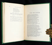Binding: Attractive and near fine original publisher’s full emerald-green cloth, beautifully decorated in black and gilt on the upper cover with a radiant celestial motif with a rising sun and crescent moon surrounded by golden rays and stars, symbolizing spiritual illumination. Black decorative borders and geometric Art-Nouveau-inspired ornamentation (hinges fine, overall slightly scuffed - as shown) under a protective removable mylar cover.