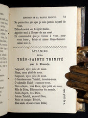 The book: A superb example of a 19th-century Belgian devotional manual, this Ange Conducteur is both a spiritual companion and a work of craftsmanship. Intended for daily use, these pocket-sized prayer books were often gifted to young Catholics or used for First Communion. This edition stands out not only for its completeness and spiritual content but especially for its extraordinary presentation: a working clasp, striking corner hardware, and decorative gilt edges with a rare fleur-de-lys engraving—symbolic of Marian devotion and French Catholic heritage.