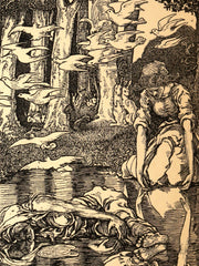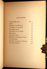 The book: A lovely First American Edition of Laurence Housman’s enchanting collection of fairy tales, presented in an exquisite Art Nouveau format that perfectly complements the dreamlike narratives. The stories evoke a lyrical, pastoral fairyland where princes, maidens, and magical beings inhabit a landscape at once delicate and slightly uncanny. The harmonious unity between text and illustration makes this volume a particularly appealing example of late nineteenth-century gift book design, capturing the era’s fascination with fantasy, symbolism, and decorative book arts.