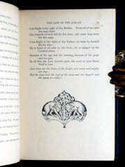 Binding: Very good and attractive original publisher’s blue cloth, gilt vignette of Kaa the python coiled around a staff on the front board, gilt decorative rules to top and bottom, and gilt spine titles with ornamental spine device (hinges fine, overall slightly worn and scuffed - as shown) under a protective removable mylar cover. A clean, bright, and handsome example with strong gilt and unfaded cloth.