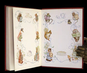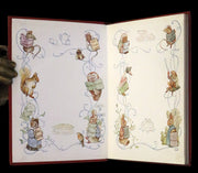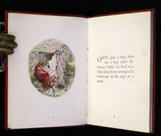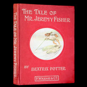 Binding: Attractive and good original publisher's red boards with white lettering on the cover and spine. An illustrated paste-on pictorial roundel of Mr. Jeremy Fisher graces the front cover (hinges tight, overall slightly worn and scuffed - as shown) under a protective removable mylar cover.
