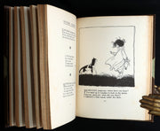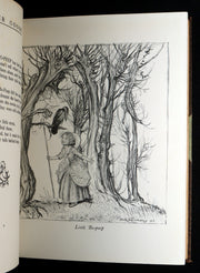 The book: Published in 1913, Mother Goose. The Old Nursery Rhymes is one of Arthur Rackham’s most beloved illustrated books and a cornerstone of Golden Age children’s literature. Issued by William Heinemann, the volume brings together the traditional nursery rhymes of Mother Goose with Rackham’s unmistakable visual language—at once playful, poetic, and faintly uncanny. This later printing, preserved in an elegant Arts & Crafts–style leather binding and retaining the original publisher’s cloth elements, offers a refined balance between collectability and aesthetic presence.