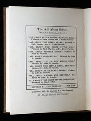 The book: This first Gruelle edition of All About Hansel and Grethel offers a concise and engaging retelling of the classic Grimm fairy tale, adapted for young readers in the popular “All About” series. The story follows the impoverished siblings abandoned in the forest, their encounter with the witch’s candy house, and their ultimate triumph and return home laden with jewels. Gruelle’s lively and expressive illustrations infuse the tale with warmth and gentle humor, softening the darker elements while preserving the moral arc of resilience and cleverness.