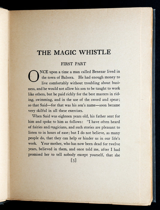 The book: This first edition of The Magic Whistle and Other Stories is a delightful early 20th-century children’s book, offering a trio of fantasy tales: "The Magic Whistle," "Little Dwarf Nose," and "Nutcracker and Mouse-King." These are presented in multiple parts, reflecting serialized storytelling. The edition is richly illustrated with enchanting plates by Florence Anderson, who evokes the magical realism and elegant fantasy of the period. Browne’s adaptations bring together elements of Arabian folklore, German Romanticism, and Christmas mythos in a volume that is both visually and narratively charming.