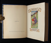 The book: This charming illustrated edition of Heidi presents Johanna Spyri’s beloved alpine tale in one of its most celebrated American gift-book forms. The story of the orphaned Heidi, sent to live with her reclusive grandfather in the Swiss Alps, became one of the most enduring classics of children’s literature, praised for its pastoral beauty, moral warmth, and vivid evocation of mountain life. This large-format David McKay edition, issued in the early twentieth century, was designed as an elegant presentation volume, combining generous margins, rich paper, and a harmonious integration of text and illustration. Its visual program captures both the innocence of childhood and the grandeur of the alpine landscape, making it especially desirable to collectors of illustrated children’s books.