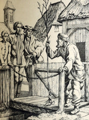 The book: A refined 1933 English edition of La Fontaine’s celebrated Fables, here translated into verse by Edward Marsh and presented in an elegant private-press style printing. The collaboration between Marsh’s dignified poetic rendering and Stephen Gooden’s exquisitely engraved illustrations produces a volume of exceptional literary and artistic harmony. Gooden’s plates evoke both classical restraint and imaginative precision, underscoring the fables’ timeless moral wit, irony, and human insight.