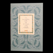 Content: Fine content. Interior pages feature calligraphic handwritten text accompanied by charming illustrations of St. Nick, reindeer, and festive holiday scenes. The book includes unique fold-out pages and decorative elements, such as a hand-drawn North Pole map, St. Nick’s workshop, and surrounding areas. Also includes a small card for "F. Christmas, Esq.," lending an extra touch of whimsy.