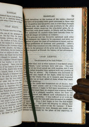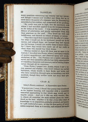 Binding: Attractive and very good handsome contemporary full green calf binding richly decorated in gilt and blind. The covers feature an elegant panel design with ornate corner tools, and the spine is divided into compartments with elaborate gilt ornaments and a contrasting red morocco lettering-piece titled Rasselas. Marbled endpapers and marbled edges. (hinges fine, overall slightly worn and scuffed - as shown) under a protective removable mylar cover. Overall a very attractive period binding.