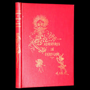 Binding: Attractive and near fine original red full-cloth binding with gilt illustrations and title on the front cover and spine. The cover design includes whimsical imagery of fairies and fantasy elements (hinges fine, overall slightly scuffed - as shown) under a protective removable mylar cover.