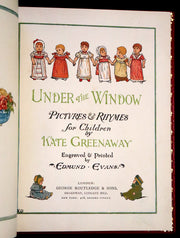 The book: Rare and attractive First edition of Under the Window, a classic children's book by Kate Greenaway. Beautifully bound and signed by Sangorski & Sutcliffe, this work features delightful illustrations and rhymes that capture the innocence and charm of childhood. The illustrations by Greenaway are renowned for their delicate and enchanting style, which have made her one of the most beloved children's book illustrators of the 19th century.