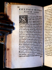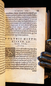 The book: Rare and very nice 16th-century edition of Polybius’ Histories - they were originally written in 40 volumes, only the first five of which are extant in their entirety. The bulk of the work was passed down through collections of excerpts kept in libraries in the Byzantine Empire. Polybius, a historian from the Greek city of Megalopolis in Arcadia, was taken as a hostage to Rome after the Roman defeat of the Achaean League in Achaean War, and there he began to write an account of the rise of Rome to a world power.