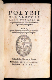 Title: Polybii Megalopolitani Historiarum libri priores quinque, Nicolao Perotto Sipontino interprete : Item, Epitome sequentium librorum, usque ad decimumseptimum, Vuolfgango Muscolo interprete.