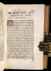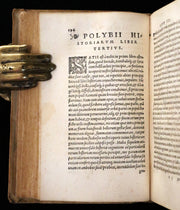 The book: Rare and very nice 16th-century edition of Polybius’ Histories - they were originally written in 40 volumes, only the first five of which are extant in their entirety. The bulk of the work was passed down through collections of excerpts kept in libraries in the Byzantine Empire. Polybius, a historian from the Greek city of Megalopolis in Arcadia, was taken as a hostage to Rome after the Roman defeat of the Achaean League in Achaean War, and there he began to write an account of the rise of Rome to a world power.