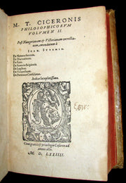 Title: M. Tulli Ciceronis Librorum Philosophicorum. Volumen II, De natura deorum, De divinatione, De fato, De somnio Scipionis, De legibus, De Universitate, De petitione consulatus (Complete volume including The Dream of Scipio).