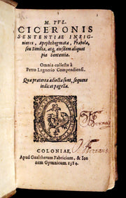 The book: This rare and fascinating work by Marcus Tullius Cicero is a compilation of notable sayings, aphorisms, and moral sentences. Compiled by Petro Lagnerio, it includes a comprehensive index of authors and subjects. This particular edition, printed in 1584, showcases the enduring influence of Cicero's thoughts on philosophy, ethics, and rhetoric. The small format and decorative binding suggest it was intended for personal use, likely serving as a source of wisdom and reflection for its owner.