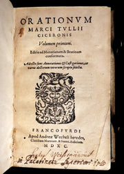 Title Orationum Marci Tullii Ciceronis volumen Primum. Editio ad Manutianam & Brutinam conformata. Adiectæ sunt annotationes & castigationes, ex variis doctorum virorum scriptis selectæ. (Complete 1st volume of the Orations of Cicero).