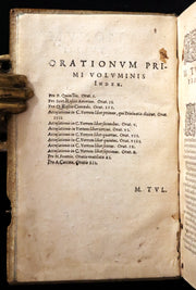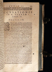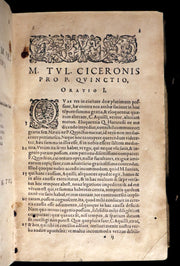 The book: Scarce and very attractive 16th-century edition of 12 complete speeches / orations of Cicero including Pro P. Quinctio, Pro Sext.Roscio Amerino, Accusationis in C. Verrem, Pro M.Fonteio and Pro A.Cecina.