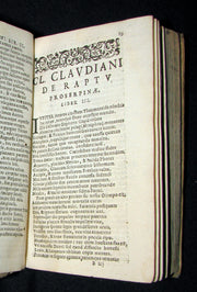 The book: Rare and nice early 17th-century edition of Claudian's Poetry. Although a native speaker of Greek, Claudian is one of the best Latin poetry stylists of late antiquity. He is not usually ranked among the top tier of Latin poets, but his writing is elegant, he tells a story well, and his polemical passages occasionally attain an unmatchable level of entertaining vitriol. The literature of his time is generally characterized by a quality modern critics find specious, of which Claudian's work is not free, and some find him cold and unfeeling.