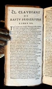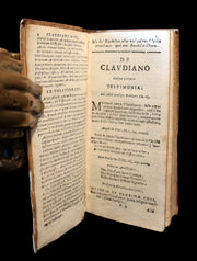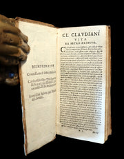 The book: Scarce and nice early 17th-century edition of Claudian's Poetry. Although a native speaker of Greek, Claudian is one of the best Latin poetry stylists of late antiquity. He is not usually ranked among the top tier of Latin poets, but his writing is elegant, he tells a story well, and his polemical passages occasionally attain an unmatchable level of entertaining vitriol. The literature of his time is generally characterized by a quality modern critics find specious, of which Claudian's work is not free, and some find him cold and unfeeling.