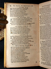 Content: Very good content (bright, tight and clean, rare light foxing or staining - as shown). A complete and well-preserved edition of Martial’s celebrated Epigrams, printed in elegant small type on crisp early 17th-century paper. Early ink numbering to the front endpaper.