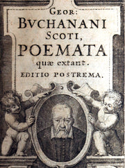 Illustrations: Fine engraved architectural title page with portrait medallion of Buchanan flanked by putti and an ornamental cartouche; decorative initials and typographic ornaments throughout the text.
