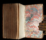 Content: Good content (tight and clean, rare light foxing, toning and staining - as shown, the first three leaves including the engraved title have small chips to their extreme lower outer corners not affecting the printed text or border - as shown, one blue Ex Libris ink stamp (“EX LIBRIS ... ET AMICORUM”) on an early leaf - as shown, the free marbled endpapers (front and rear) have been removed, leaving the marbled pastedowns visible - as shown).