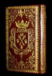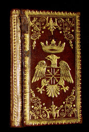 Contemporary Roman brown morocco gilt with the arms of the Machiavelli and Baccelli families contained within an eagle surround, flat spine gilt, gilt edges. Our binding is decorated by tools associated with a shop once designated the ‘Rospigliosi Bindery’ on account of the work it undertook (directly and on behalf of donors) for Giulio Rospigliosi as Cardinal and as Pope Clement ix (1667–1669). From about 1656, the shop worked continuously for the Biblioteca Vaticana. Recent scholarship has identified its proprietors as the brothers Gregorio (died 1696) and Giovanni Andreoli (died 1699) -- Andreoli brothers.