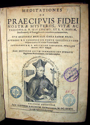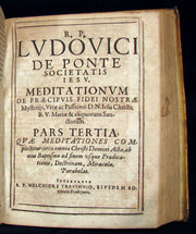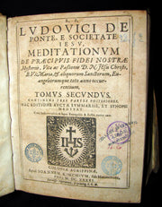 Title : Meditationes de praecipuis fidei nostrae mysteriis, vitae ac passionis d.n. Iesu Christi,et b. v. Mariae sanctorumque, et evangeliorum toto occurrentium, cum orationes mentalis circa eadem praxi Ludovico de Ponte . Interprete R.P. Melchiore Trevinnio . (Complete 2 volumes of Meditations of the Venerable Father Ludovico Da Ponte).