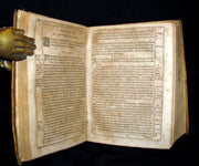 Binding : Very good full vellum binding (hinges fine, overall worn, soiled and scuffed) under a removable protective mylar cover .