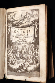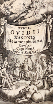 The book: Scarce 17th century edition by Thomae Farnabii of The Metamorphoses (Latin: Metamorphōseōn librī: "Books of Transformations") -- a Latin narrative poem by the Roman poet Ovid, considered his magnum opus. Comprising fifteen books and over 250 myths, the poem chronicles the history of the world from its creation to the deification of Julius Caesar within a loose mythico-historical framework.