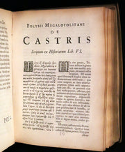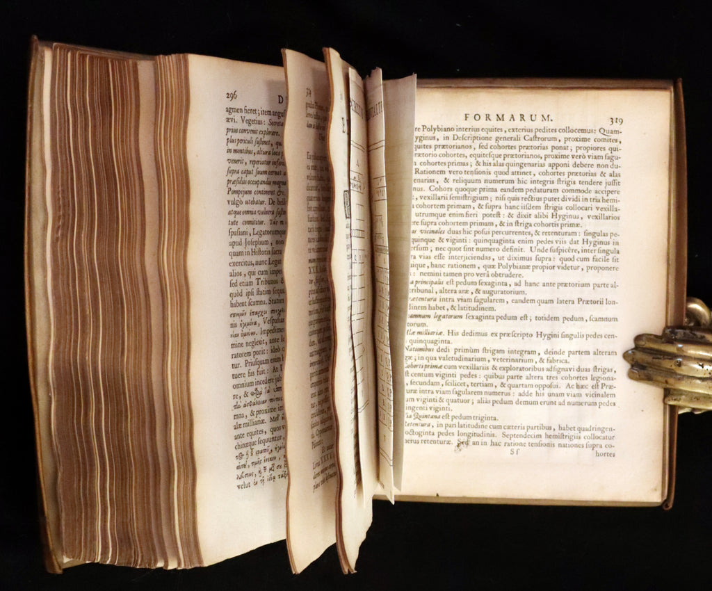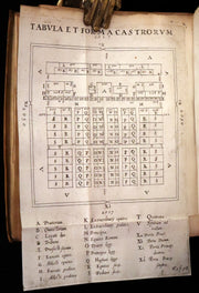 The book: This scarce edition of "De castris Romanis quae exstant" stands as a testament to the technical brilliance of the Romans, with an acute focus on their military camps. It's not just a book but a time capsule, offering readers a detailed look into the Roman world, especially their military strategies. With its pristine illustrations and an attractive vellum binding, this is a collector's delight, offering invaluable insights into one of the greatest empires in history..