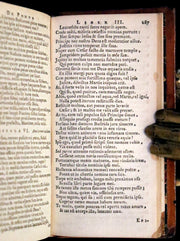 The book: " Publii Ovidii Nasonis Operum" is a rare and complete set of three volumes of Ovid's works, published in 1664 by the prestigious Elzevir press in Amsterdam. This edition is particularly noteworthy for its compact size and contemporary full calf binding, indicative of the high quality and attention to detail for which Elzevir editions are renowned. The texts are presented in Latin, offering a direct engagement with Ovid's original language, covering his epic myths, love poetry, and didactic works.