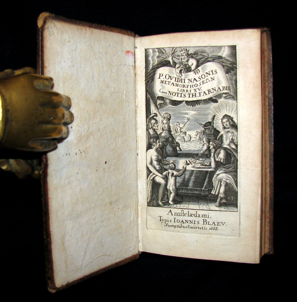 The book : Rare and nice 17th century edition of The Metamorphoses (Latin: Metamorphōseōn librī: "Books of Transformations") --a Latin narrative poem by the Roman poet Ovid, considered his magnum opus. Comprising fifteen books and over 250 myths, the poem chronicles the history of the world from its creation to the deification of Julius Caesar within a loose mythico-historical framework.