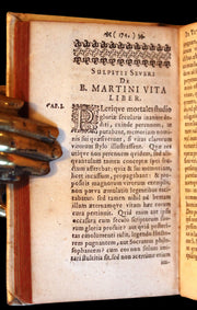The book: Nice and scarce 17th-century edition of the works of Severus. Including Chronicle (Chronica, Chronicorum Libri duo or Historia sacra, c. 403), a summary of sacred history from the beginning of the world to his own times. Also included is his most popular work during the Middle Ages -- Severus' Life of St. Martin, as were also the dialogues and letters which relate to the same subject. These works did much to establish the great reputation which that wonder-working saint maintained throughout the Middle Ages. The book is not properly a biography, but a catalog of miracles told in all the simplicity of absolute belief.