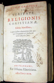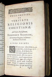 The book : Rare and attractive edition of The Truth of the Christian Religion by Grotius - While in Paris, Grotius set about rendering into Latin prose a work which he had originally written as Dutch verse in prison, providing rudimentary yet systematic arguments for the truth of Christianity. The Dutch poem, Bewijs van den waren Godsdienst, was published in 1622, the Latin treatise in 1627, under the title De veritate religionis Christianae.