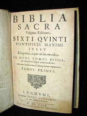 Title : Biblia Sacra vulgatae editionis, Sixti Quinti pontificis maximi iussu recognita atque in lucem edita: in duos tomos divisa, ad uniuscuiusque commodum ; indicéque Epistolarum, & Evangeliorum augmentata. (Complete set of 2 books).