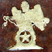 Binding: Attractive and good contemporary leather binding with intricate gilt decorations on the spine and boards. The cover features a central gilt-stamped emblem of a double-headed eagle holding a scepter and orb, symbolizing power and authority. The spine displays raised bands with gilt floral motifs in the compartments and the title "Justinus" in gilt (hinges worn and cracked but still tight and secure, overall worn and scuffed - as shown) under a protective removable mylar cover.