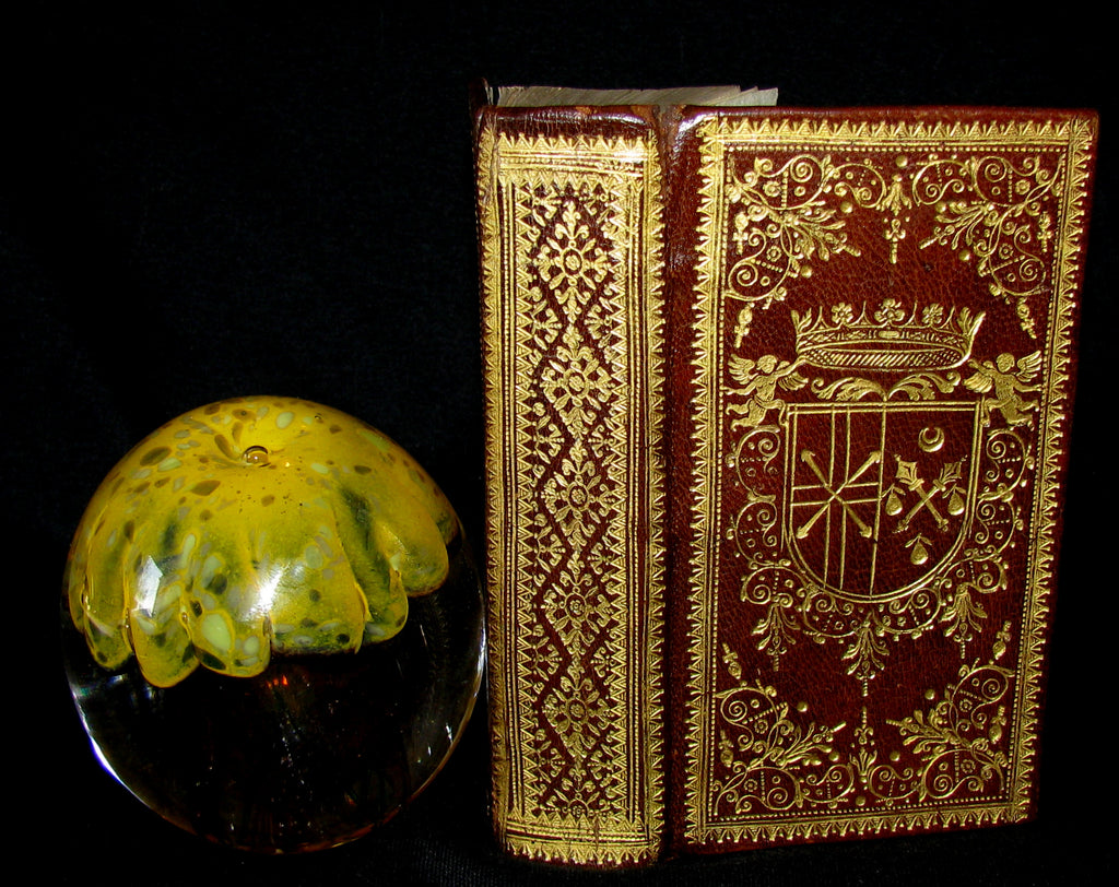 Binding : Attractive and very good full leather binding (hinges fine, overall slightly worn and scuffed) under a removable protective mylar cover . Our binding is decorated by tools associated with a shop once designated the ‘Rospigliosi Bindery’ on account of the work it undertook (directly and on behalf of donors) for Giulio Rospigliosi as Cardinal and as Pope Clement ix (1667–1669). From about 1656, the shop worked continuously for the Biblioteca Vaticana. Recent scholarship has identified its proprietors as the brothers Gregorio (died 1696) and Giovanni Andreoli (died 1699) -- Andreoli brothers.