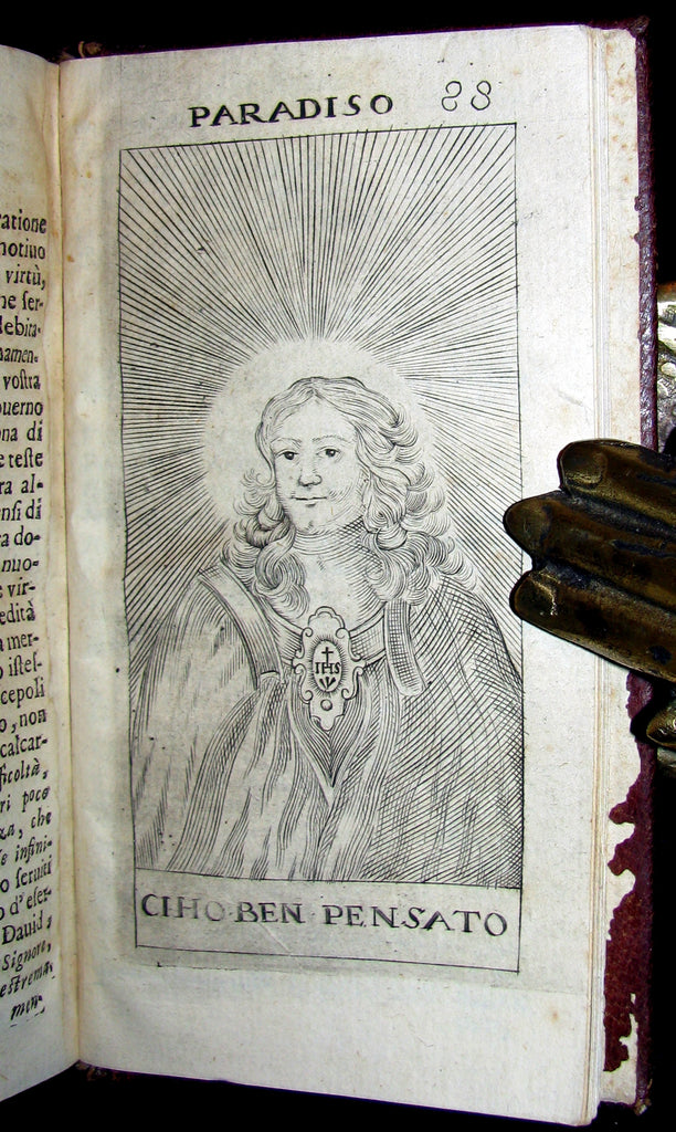 The book : Attractive 17th century ROSPIGLIOSI BINDERY WORK with the arms of Machiavelli (left part) and Baccelli (right part), but we haven’t identified the exact provenance.