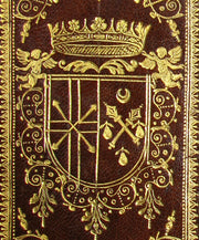 The winged putti tools are found on other examples from the Vatican Bindery, which was operated by the Andreoli Brothers, a shop formerly called the Rospigliosi Bindery after one of its patrons; see Legatura Romana Barocca (1991) pl. XI.